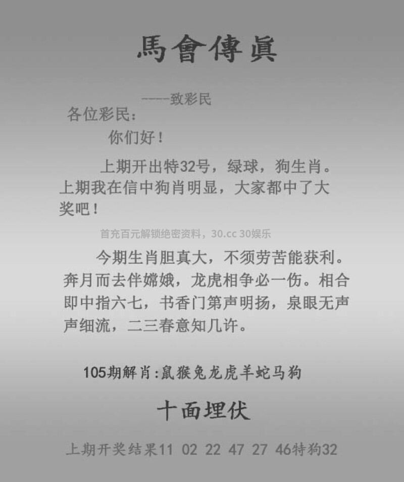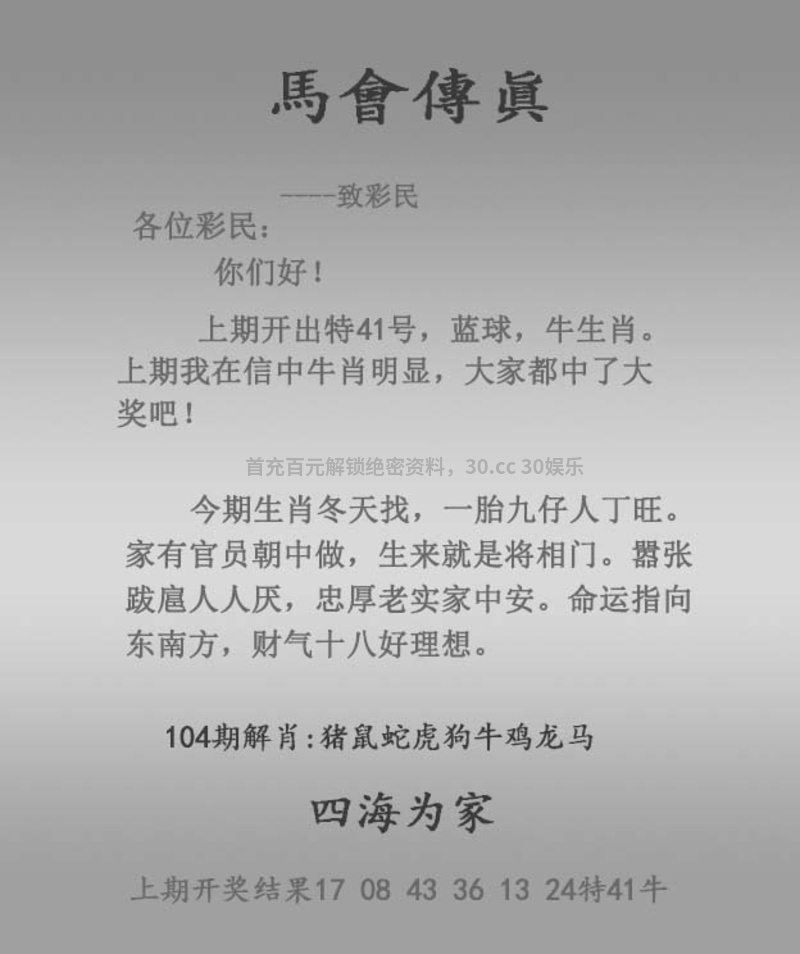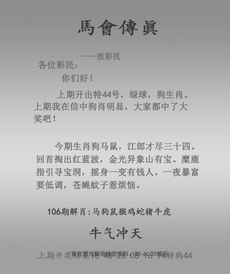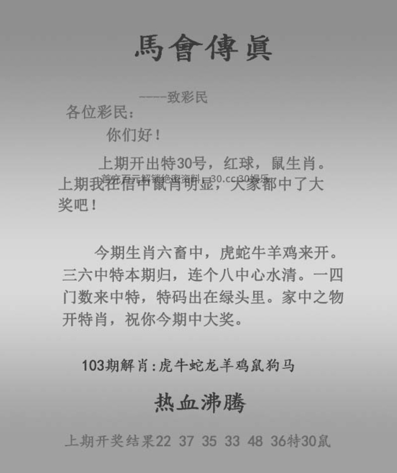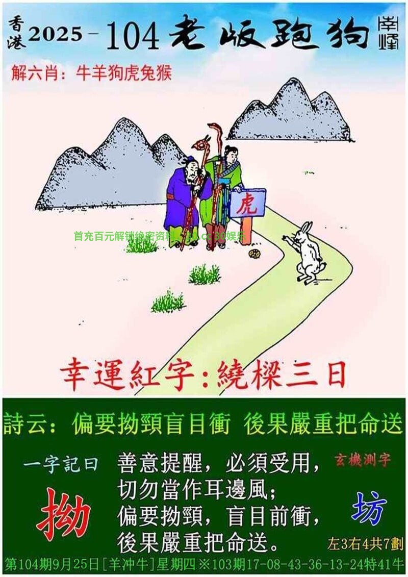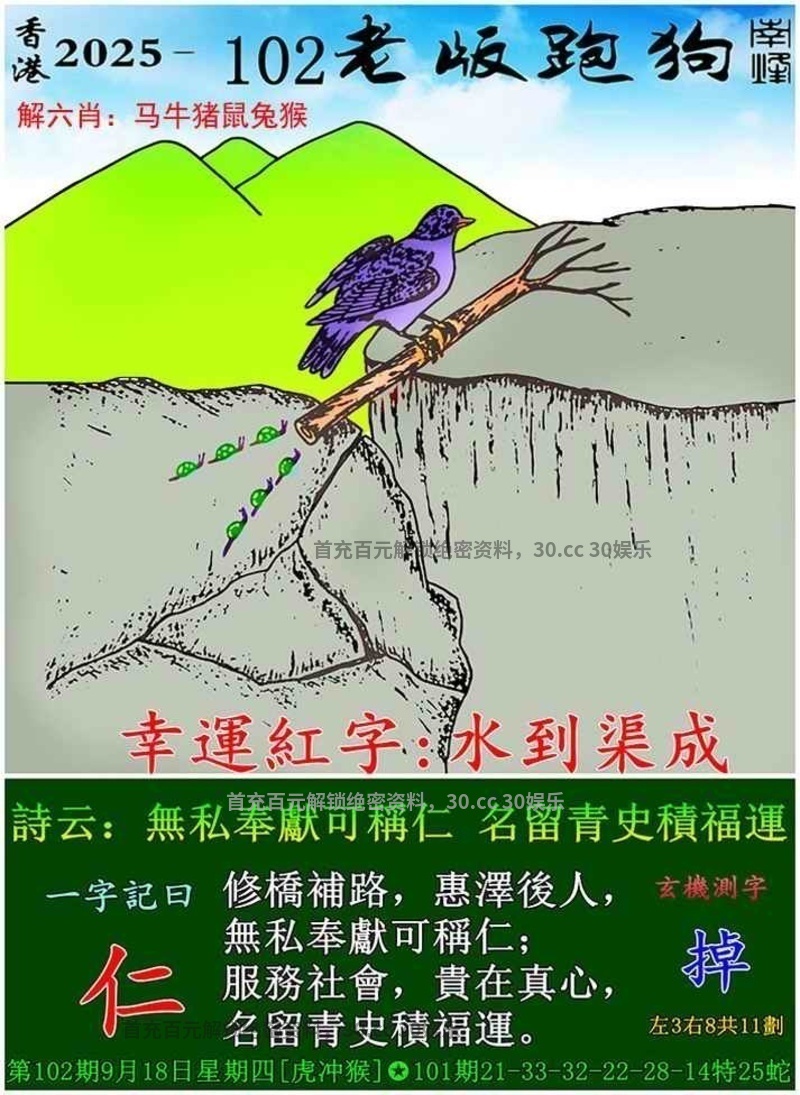 103期:马会传真解析: 今期生肖六畜中,虎蛇牛羊鸡来开 三六中特本期归,连个八中心水清 一四门数来中特,特码出在绿头里 家中之物开特肖,祝你今期中大奖 热血沸腾 解析:今期生肖六畜中,虎蛇牛羊鸡来开,明肖虎蛇牛羊鸡,三六中特本期归,连个八中心水清,36马,一四门数来中特,特码出在绿头里,1.4门,家中之物开特肖,祝你今期中大奖,家禽 综合:马牛羊鸡狗猪虎蛇猴 |